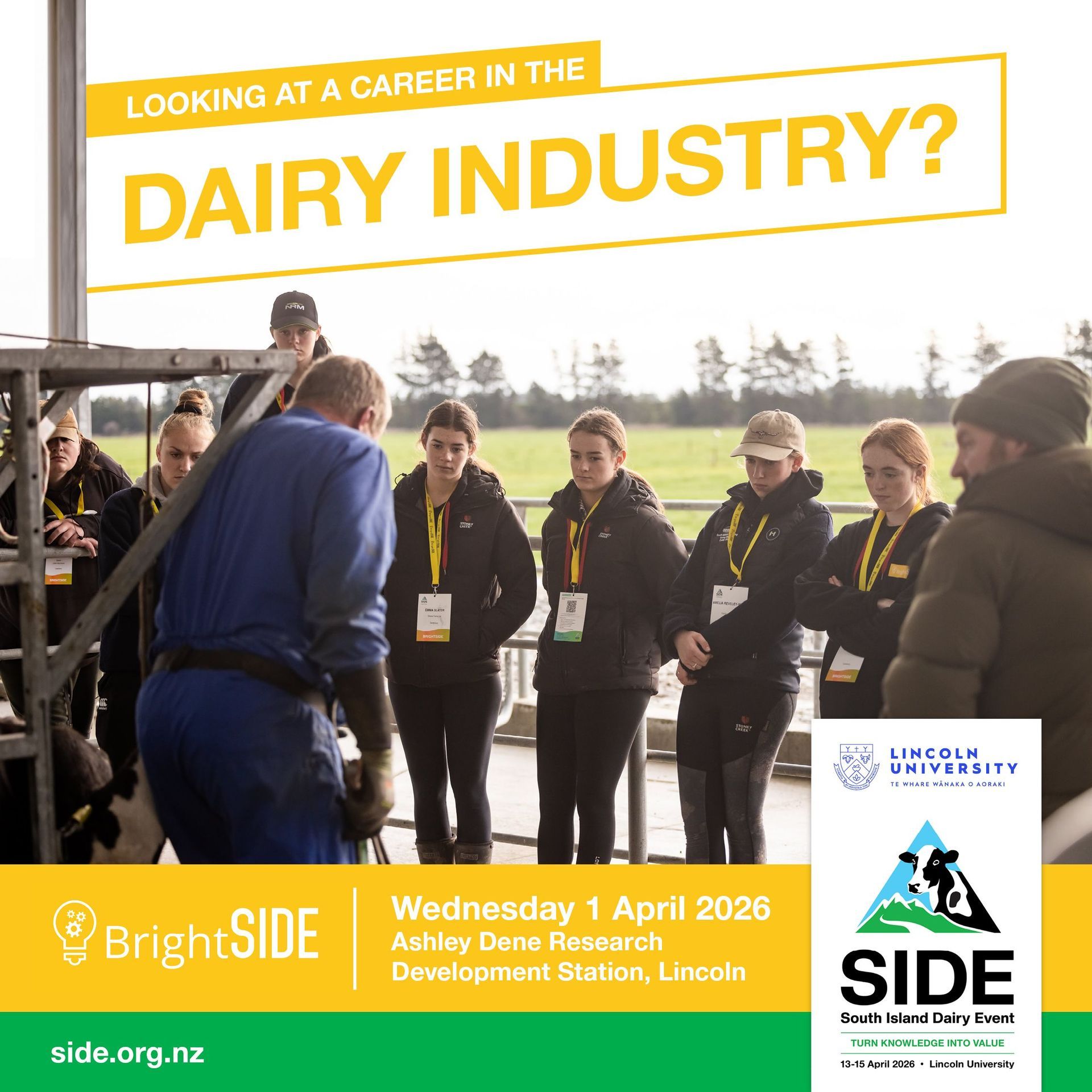 BrightSIDE is a hands-on, interactive day designed to showcase the diversity of skills in modern dairying.